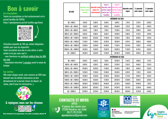 Pour le tarif, sachez que c'est le coefficient CAF du mois de janvier de l'année en cours qui sera pris en compte.