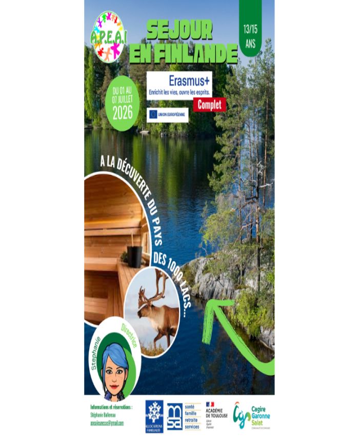 Le projet en de l'année 2025/2026 se fait en partenariat avec la Finlande. Nous recevrons un groupe de jeunes finlandais du 27 avril au 3 mai 2026, et nous partirons en Finlande du 1er au 7 juillet 2026.