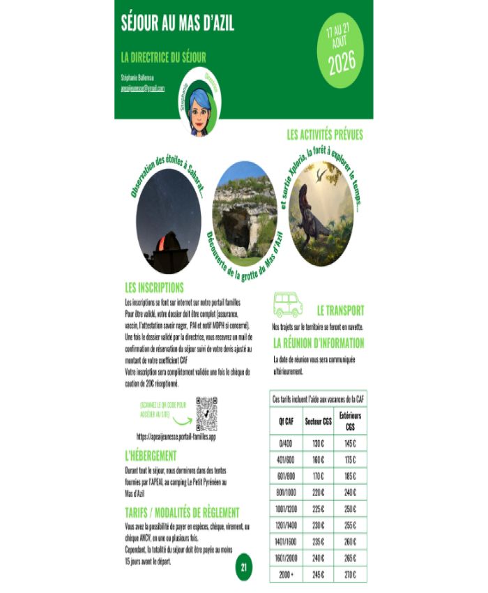 Inscriptions: via le votre compte sur le Portail Familles de l'APEAI (informations sur l'affiche)