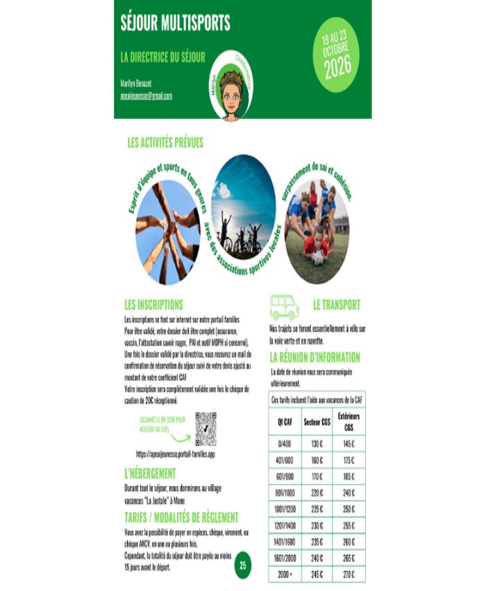 Inscriptions: via le votre compte sur le Portail Familles de l'APEAI (informations sur l'affiche)