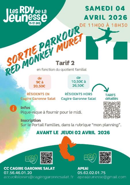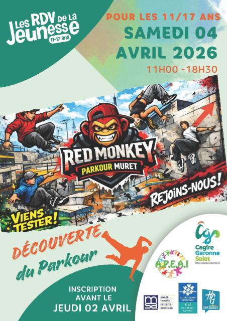 Sortie "Red Monkey" à Muret pour la découverte du parkour, samedi 4 avril 2026.