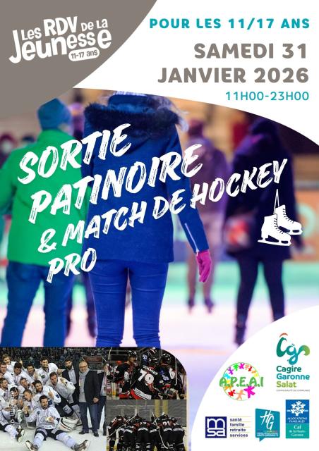 Nouvelle sortie pour la jeunesse! Samedi 31 janvoer, sortie à la patinoire de Blagnac avec en plus un match de hockey le soir!